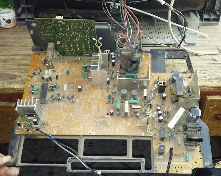 Estimados colegas quiero dejar cerrado el tema pero antes quiero darles las gracias a todos que de una u otra forma respondieron a mi pedido de ayuda para solucionar el problema, como así también quiero dejar explicado como llegue a la solucion, tambien pido disculpa soy conciente que no es lo correcto de la forma que lo hice, un técnico debe estar preparado para solucionar los defectos de los mismos como debe ser pero honestamente me superó, por la razón al ver que no le podía frenar los +15V-2 a través de R363=10K y R365=1K los que llegaban al Colector de Q 362= 2SC1815 y al pin 10 Mode-Mute y se protegía quedando sin audio total, tampoco posee el IC= MSP 3440 LAMP y Ramp van directo al UOC, comento que para probar la etapa de salida levante el pin (8) y (9) entrada de señal en el IC de audio y le di señal con un Celular y el mismo funcionó a la perfección, luego volvi de nuevo al pin (10) de Audio é intente frenar la tensión mencionada levantando la R 364 colocando un Diodo con el cathode a maza, asi logre tener audio normal, tome lectura de las tensiones en pin (8) y (9) del IC me entregaba 0,89V en pin (10) 1,2V, funciono sin tomar temperatura ningun componentes pero a las 4 o 5 horas de estar funcionando normal comenzó a salir distorsionado el audio asta quedar gangoso con solo un ruido de fondo, de nuevo comencé a buscar levantar la tensión de los pines del IC de Audio esta ves con un Resistor de medio wuatt asta lograr que me entregue en los pines (8) y (9) 3,2V y en el pin (10) 3,8V en lugar de 10K uno con el Valor 390 Ohmios, de esa forma quedo desde las 10 de la noche asta el otro dia funcionando perfecto le entregue al dueño y según el funciona sin ningun inconveniente.... no se si puede servir a futuro aunque no es lo correcto...saludos josé
