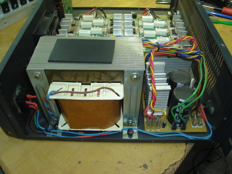 Ahí te mando una foto de una que reparé hace un tiempo, se le reemplazaron los fet de la etapa, completos, y revisá el fuse que está en la placa de la fuente, comenta!! :D