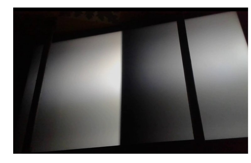 Subo unas fotos tomadas durante la falla. Las dos barras negras verticales que se ven no hacen parte del problema, pues el televisor está detrás de una mesa.