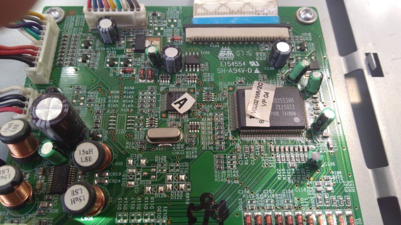 Como dije antes parece noser la misma version, pero coinciden muchas nomenclaturas de componentes, y pude medir la ficha que ingresa a la placa "main" dandome las siguientes mediciones : como se ve en la fotografia de izquierda a derecha, rojo 0v, azul5.05v, negro y naranja 0v, amarillo y verde 5.05v, blanco 1.21 en stamby y 3.23v cuando pulso el encendido, negro 4.50 y por ultimo marron 0.03v, pregunto por favor ¿Estan bien estas tensiones, porque estube viendo otro monitor de la misma marca pero VA 1903 wm y a ese le ingresa por una ficha similar una tension de 12 volts. les ruego encarecidamente una data fija. desde ya muchisimas gracias. esperando alguna poinion.