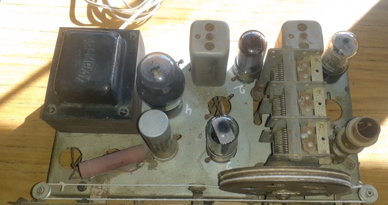 Buenas tardes a todos. Recientemente adquirí este combinado valvular para arreglar y necesito el diagrama. Desconozco la marca y el modelo ya que vino sin la tapa trasera y tanto en el gabinete como en el chasis no hay ninguna inscripción. Detallo la serie de válvulas como ayuda: 6SA7GT, 6SK7GT, 6SQ7GT y 6F6G. Hay un zócalo vacío, al lado del trafo, de 4 pines y por debajo tiene soldados 2 diodos rectificadores. Esto, entiendo, reemplaza una 5U4 o similar. Adjunto fotos para poder identificar mejor el equipo. Les cuento que el tocadiscos anda casi perfecto, sin fritura, tanto con discos de pasta como al momento de manipular el control de volumen y tono, lo cual me parece increíble por el estado en que se encuentra. El receptor de radio todo lo contrario, está muda. Apenes se escucha algún ruidito al cambiar de volumen o el tono, pero al mover el dial no se escucha nada. Hay varias soldaduras en mal estado y además sé que hay que cambiar los capacitores de cera por poliéster. Desde ya, cualquier consejo es bienvenido, porque a pesar de ser técnico electrónico, en el tema de las válvulas soy apenas un aficionado con ganas de aprender. De ahí las ganas de encarar este proyecto. Ya con la ayuda de ustedes, hace unos años puse en funcionamiento una tele a válvulas que era de mi abuelo y anda perfecto. Agradezco de antemano la ayuda de todos ustedes. Muchas gracias!