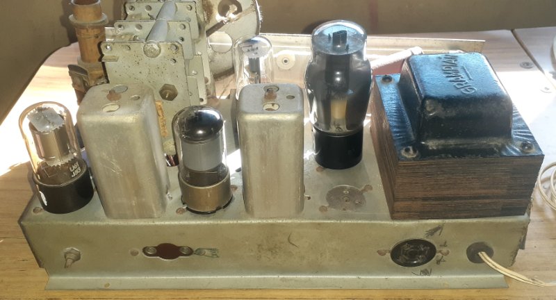 Buenas tardes a todos. Recientemente adquirí este combinado valvular para arreglar y necesito el diagrama. Desconozco la marca y el modelo ya que vino sin la tapa trasera y tanto en el gabinete como en el chasis no hay ninguna inscripción. Detallo la serie de válvulas como ayuda: 6SA7GT, 6SK7GT, 6SQ7GT y 6F6G. Hay un zócalo vacío, al lado del trafo, de 4 pines y por debajo tiene soldados 2 diodos rectificadores. Esto, entiendo, reemplaza una 5U4 o similar. Adjunto fotos para poder identificar mejor el equipo. Les cuento que el tocadiscos anda casi perfecto, sin fritura, tanto con discos de pasta como al momento de manipular el control de volumen y tono, lo cual me parece increíble por el estado en que se encuentra. El receptor de radio todo lo contrario, está muda. Apenes se escucha algún ruidito al cambiar de volumen o el tono, pero al mover el dial no se escucha nada. Hay varias soldaduras en mal estado y además sé que hay que cambiar los capacitores de cera por poliéster. Desde ya, cualquier consejo es bienvenido, porque a pesar de ser técnico electrónico, en el tema de las válvulas soy apenas un aficionado con ganas de aprender. De ahí las ganas de encarar este proyecto. Ya con la ayuda de ustedes, hace unos años puse en funcionamiento una tele a válvulas que era de mi abuelo y anda perfecto. Agradezco de antemano la ayuda de todos ustedes. Muchas gracias!