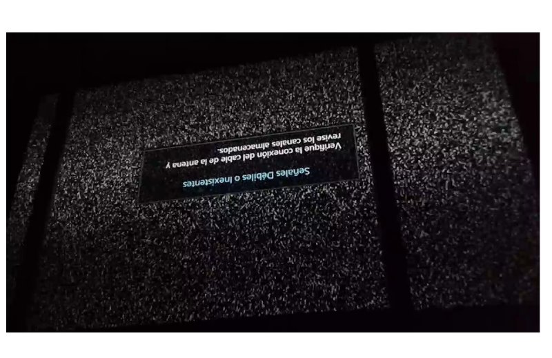 Subo unas fotos tomadas durante la falla. Las dos barras negras verticales que se ven no hacen parte del problema, pues el televisor está detrás de una mesa.
