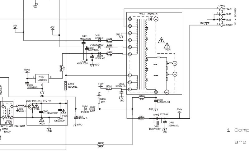 Buenas colegas, quisiera que me ayuden con una reparación, en el taller tengo una TV bluesky b2102 (Chasis 16A) que llegó sin funcionar, reemplace la R802 (2.2ohm 10W) que estaba abierta y el STR 5653 que estaba em corto, luego obtuve los voltajes del secundarios de la fuente (12v/5v/3.3V/8V/115V+B). Pero no estoy obtienendo correctamente los voltajes que debe de emitir el Flyback (45V/16V/5V/200V), en donde debe de haber los 200V sólo tengo 118V pero el resto no estan presentes. Lo mas raro de todo es que al darle al botón de power la TV hace el chirrido/silvido característico de que está encendida, pero en la pantalla no tengo imagen y tampoco hay sonido en las bocinas (pero sí se escucha que estám funcionando, es decir, al darle al power se activan las bocinas pero no suenan porque no hay entrada de audio en el amplificador).