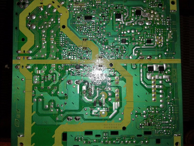 Tengo en el taller un tv led panasonic modelo TC-32A400L el cual al conectarlo a la red no enciende y solo queda el led de standby intermitente, desconecte la mainboard y arranque la fuente haciendo puente entre os pines pwr-on y los 5,2 volt del standby, pero no logro obtener los 16 voltios que se necesitan para que arranque el panel led del backlight, adjunto diagrama y fotografias de la fuente para ver si me pueden ayudar. Ya realice las mediciones y reemplace los optoacopladores pero nada, es importante mencionar que los 16v si se encuentran presentes en D7502. En el archivo aparecen 2 fuentes la primera es la del tv que estoy viendo agradezco de antemano cualquier ayuda.