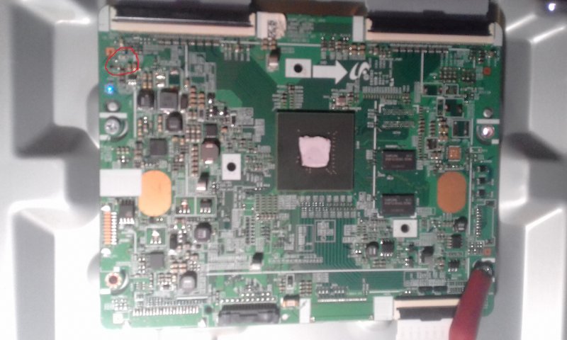 Estimados colegas este tv vino con la pantalla sin imagen,en la placa t-con bn41-02297 solo enciende un led,el otro que esta arriba marcado con circulo no enciende,sera falla de la placa o faltara alguna tensión para que prenda el otro led??gracias.