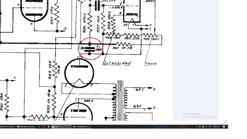Sospecho, pero no tengo forma de comprobarlo del capacitor tipo lata de 1 uf por 1,5 kV, no me he animado a desconectarlo de tierra (posee un alambre conectado a un ojal terminal al chasis) porque tenía miedo que sucediera algo.