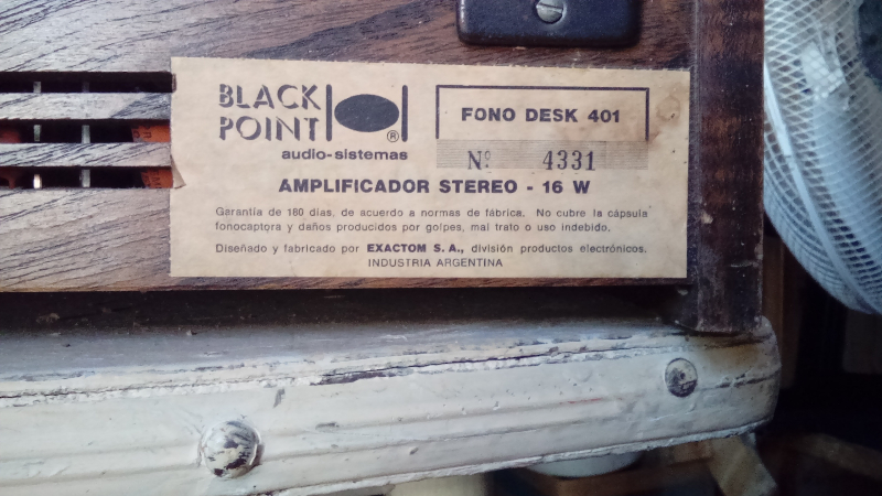 Ahora el pedido: entre unas cosas viejar que habia dejado un tio de me esposa ya fallecido, encontre un tocadisco viejo marca Black Point, modelo Fono desk 401, el mismo le falta el trafo pero lo demas esta completo al parecer . Si alguien me pudiera facilitar el diagrama electrico del mismo se lo agradeceria muchisimo. Adjunto algunas imagenes para proporcionar mas informacion a quien me pueda ayudar.