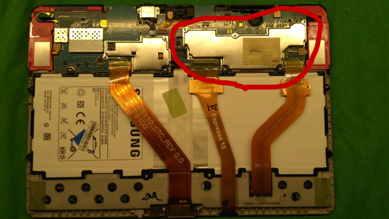 Encontré el manual de servicio de Samsung (no puedo subirlo porque es demasiado grande, 5,12Mb) e intenté seguir las instrucciones. Aun como no se si los botones de ON-VOLUME funcionan, busqué la manera de puentear dicho botón. Encontré el procedimiento ( http://www.eevblog.com/forum/repair/how ... gt-p5110)/ ), pero tampoco pasó nada, ni siquiera un parpadeo de la pantalla.